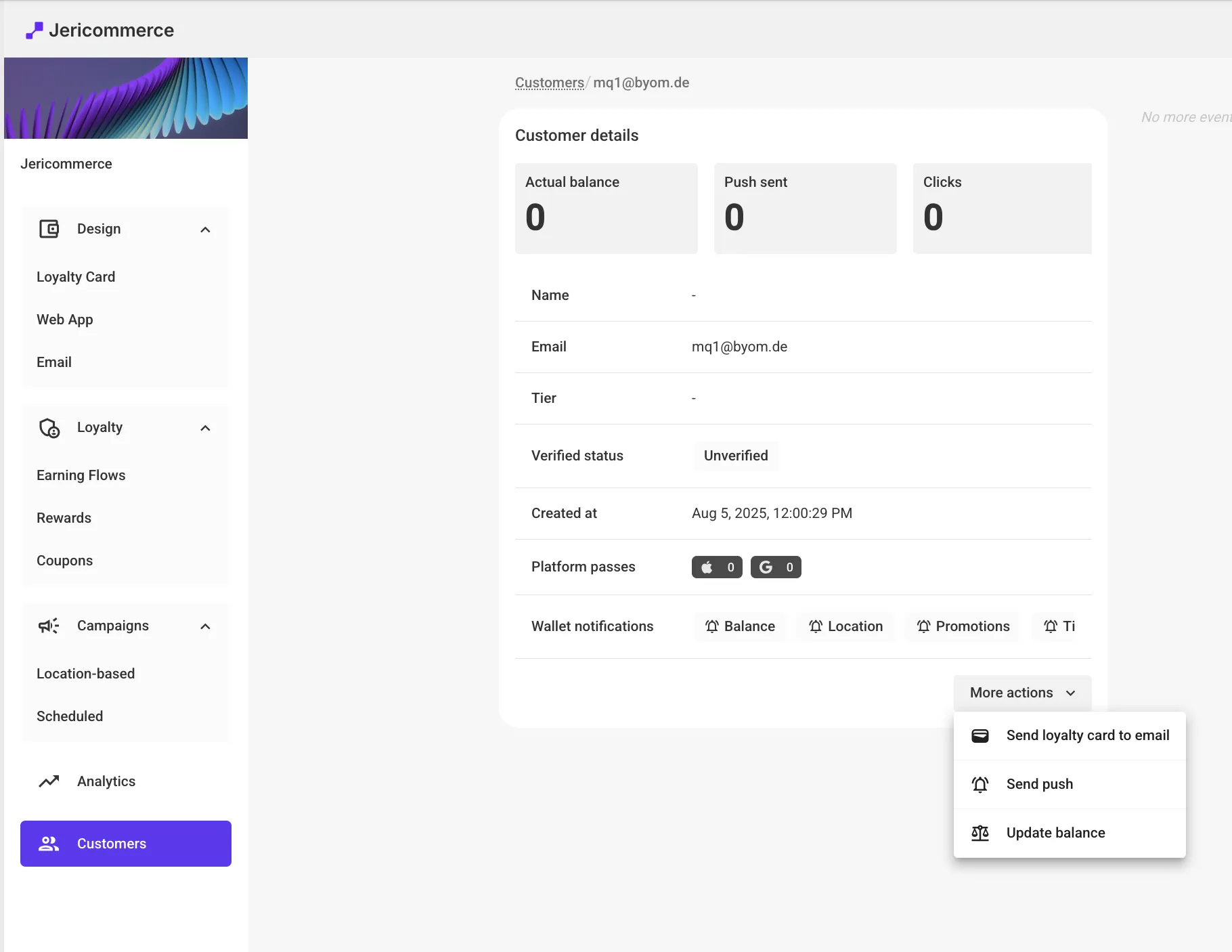 JeriCommerce > Customers > More actions