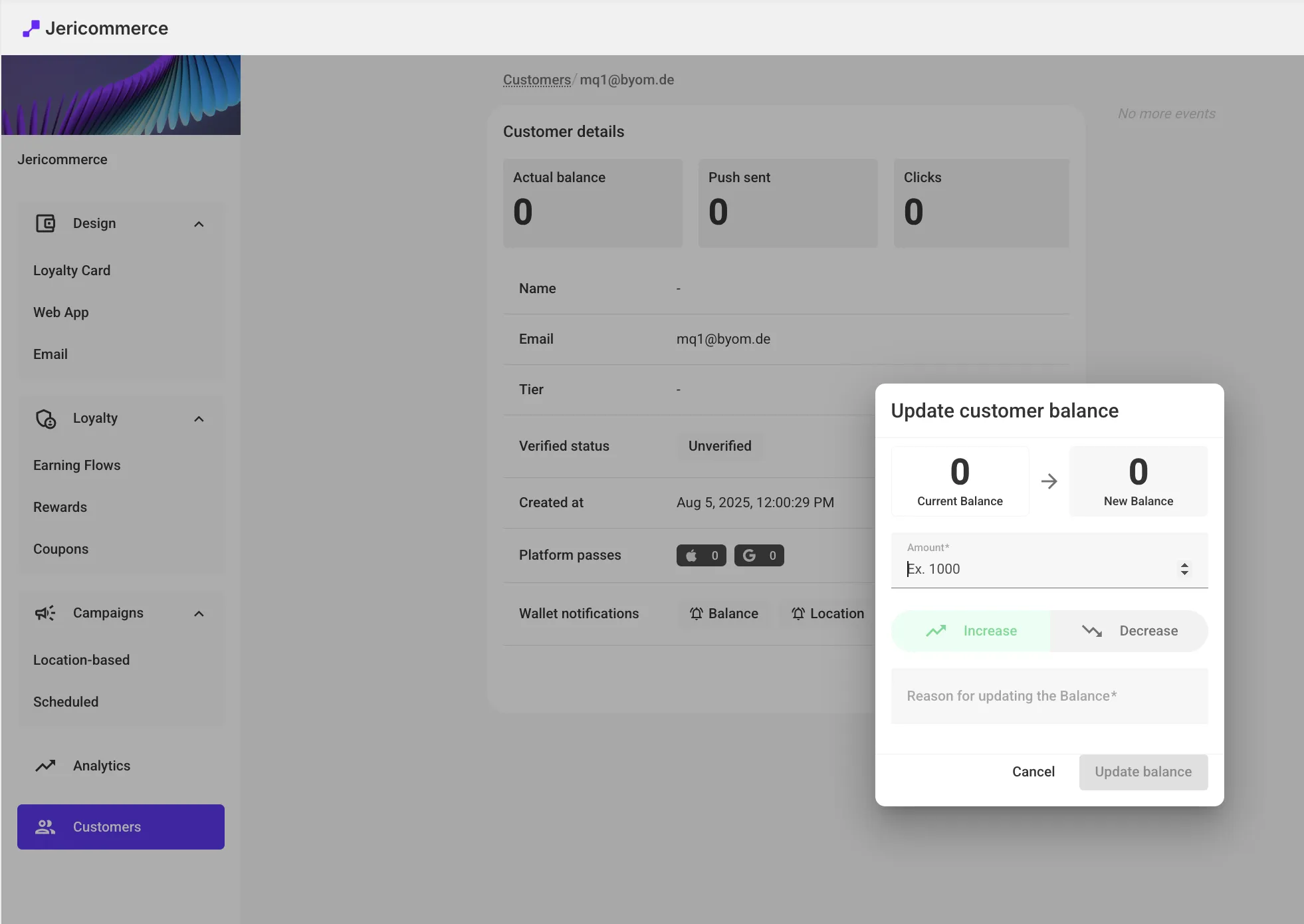 JeriCommerce > Customers > Update balance