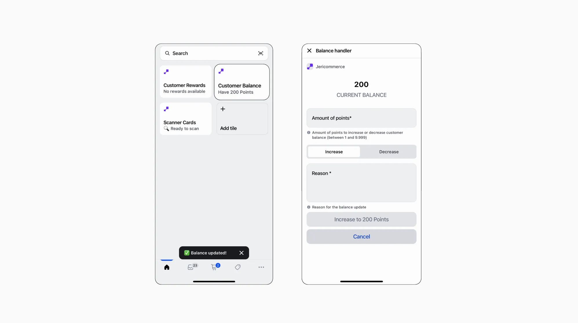 Shopify POS > JeriCommerce Tiles > Customer Balance