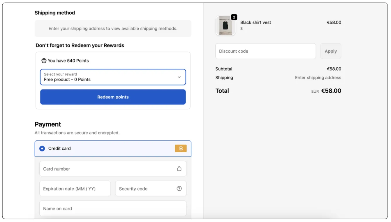 - Instant Application: Once a reward is selected and the "Redeem points" button is clicked, the benefit is applied to the order total in real-time.
