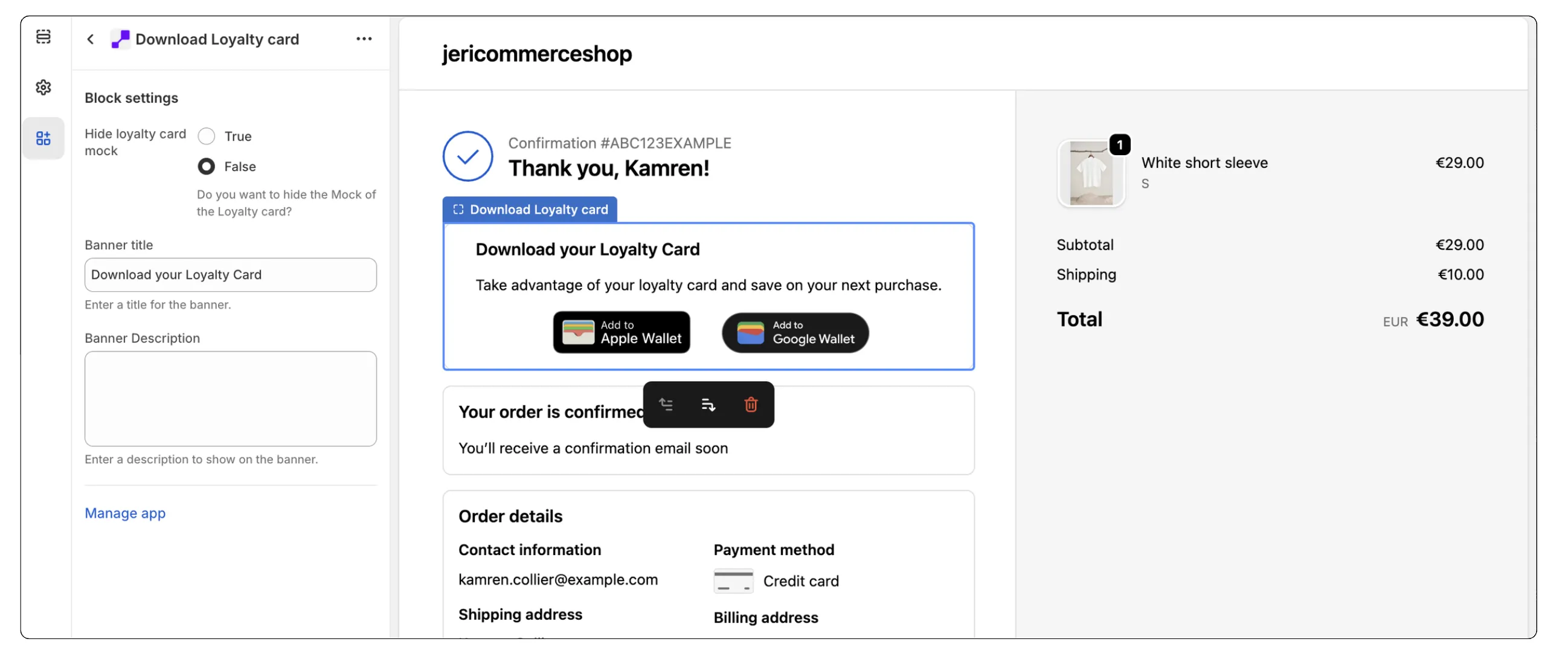 - Messaging: Edit the text to inform customers about the benefits of adding the wallet pass post-purchase.